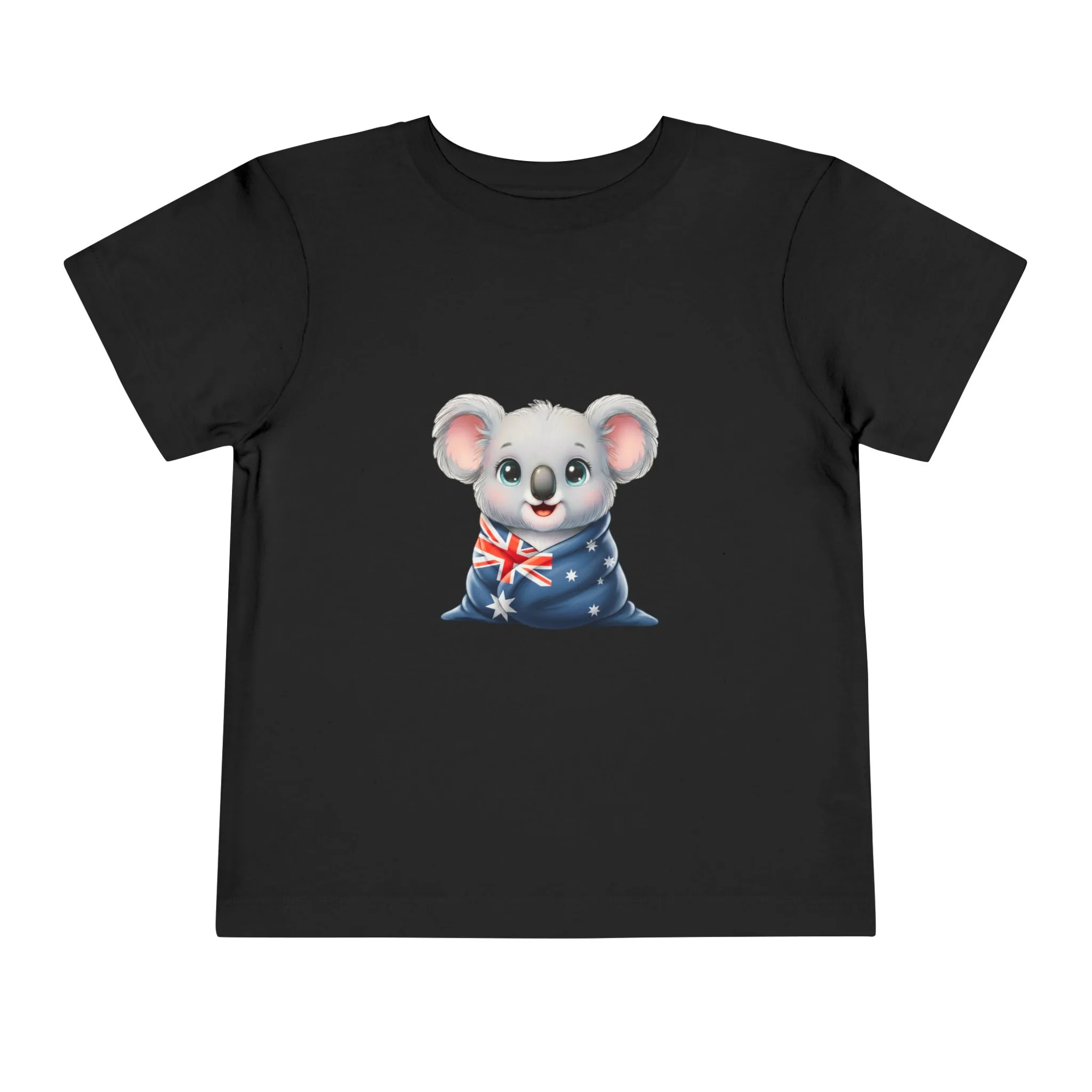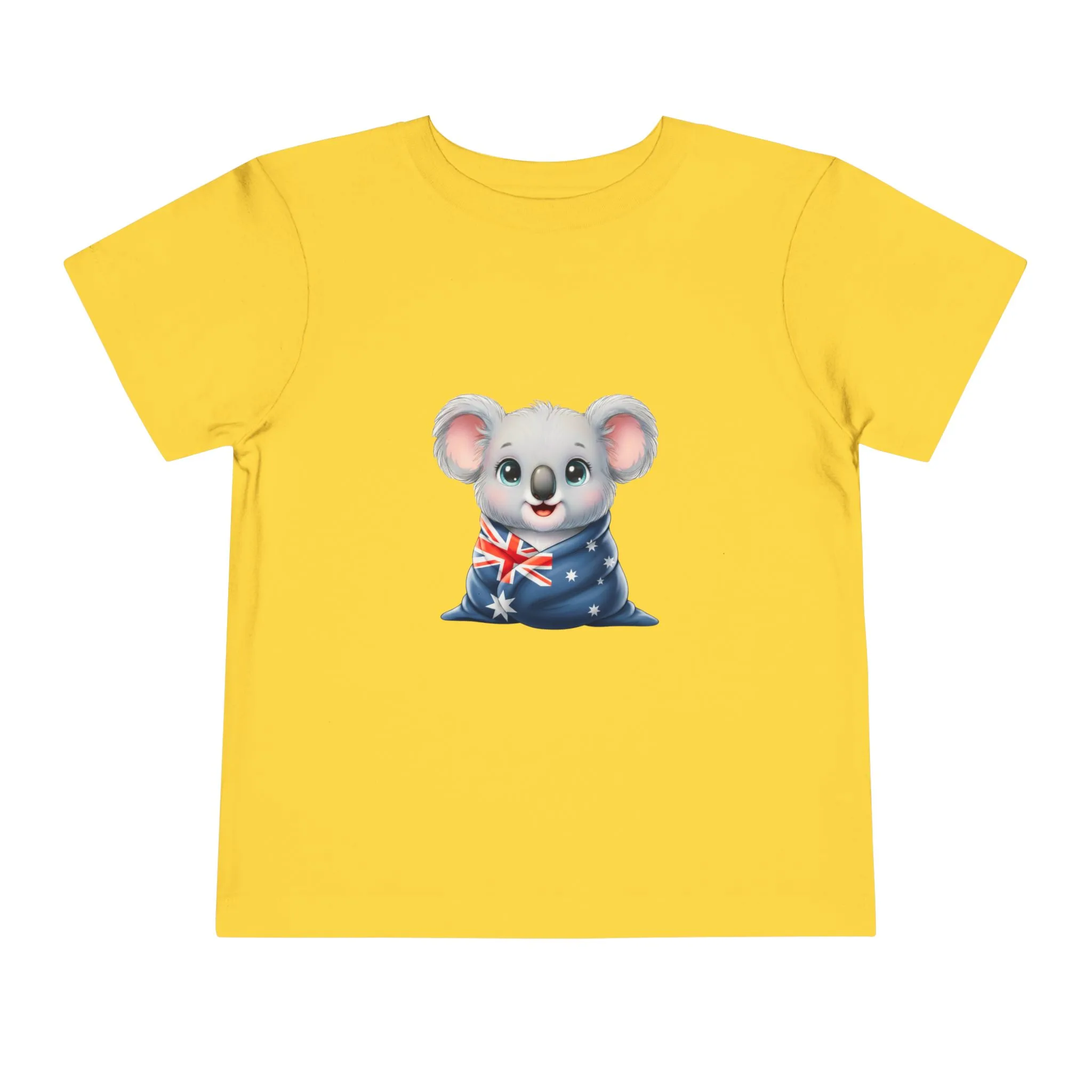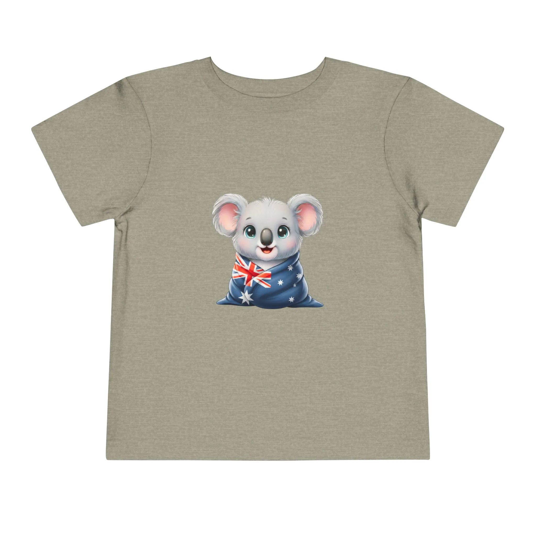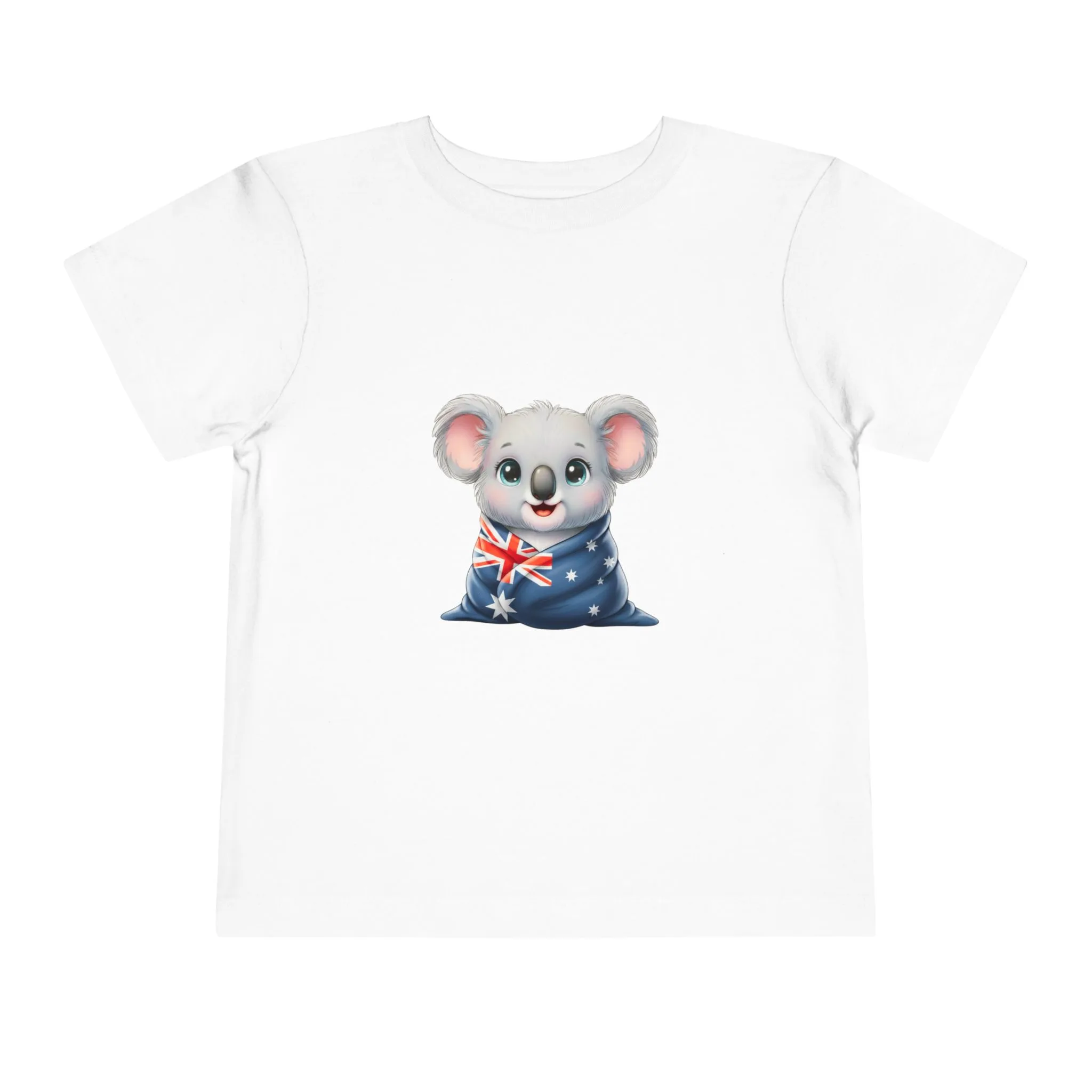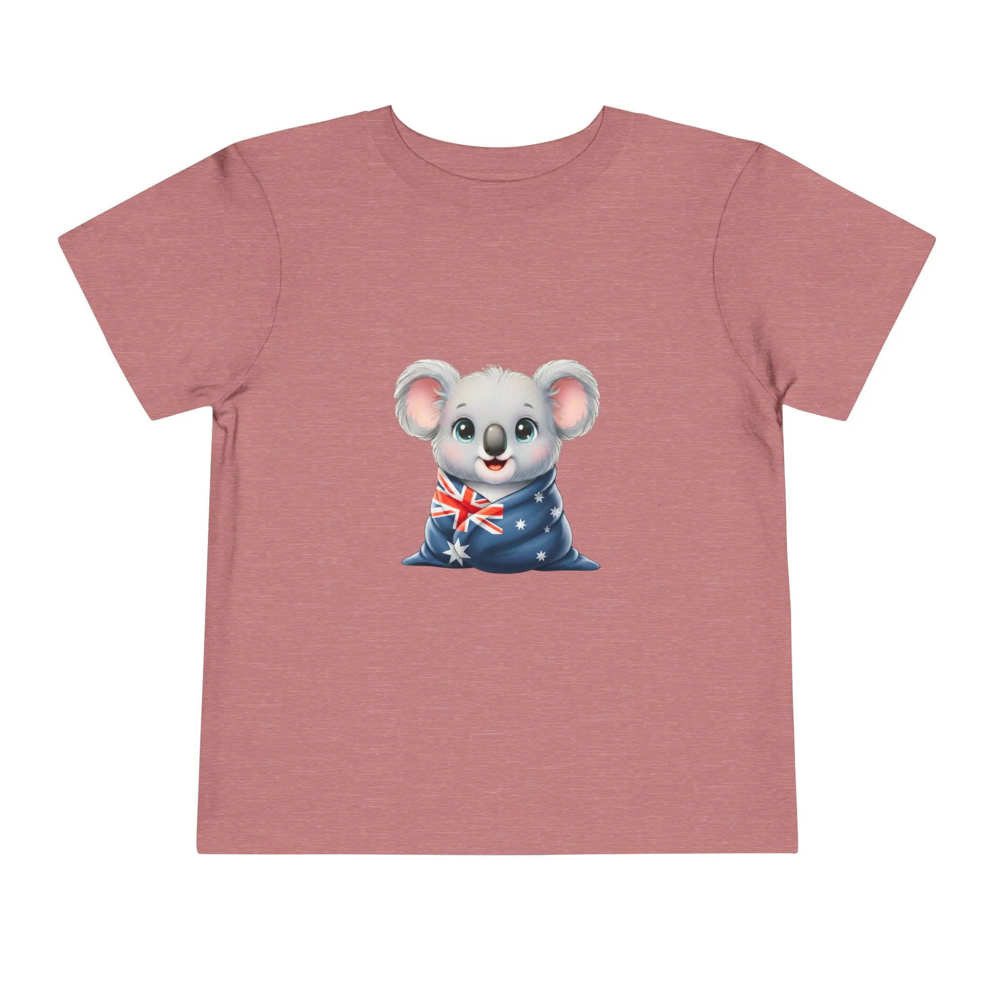 Cute Koala Wrapped in Australian Flag Toddler Short Sleeve T-Shirt Tee