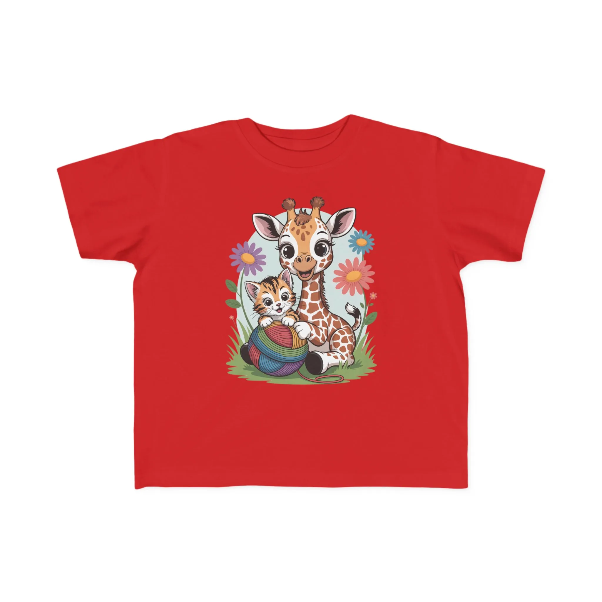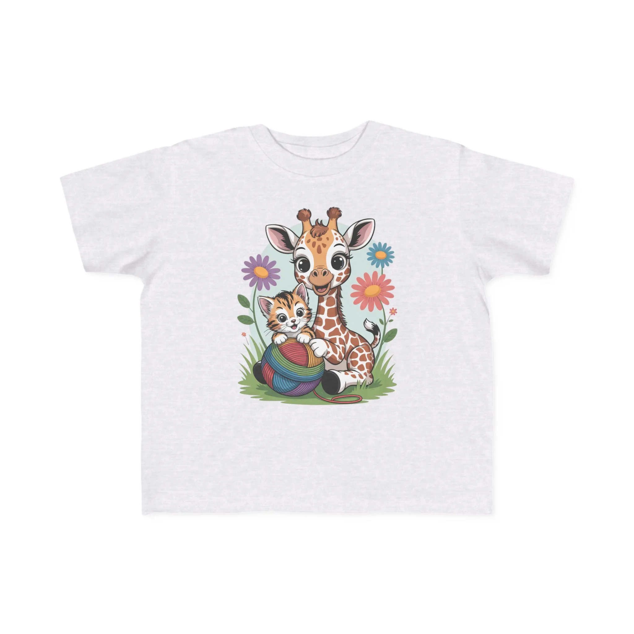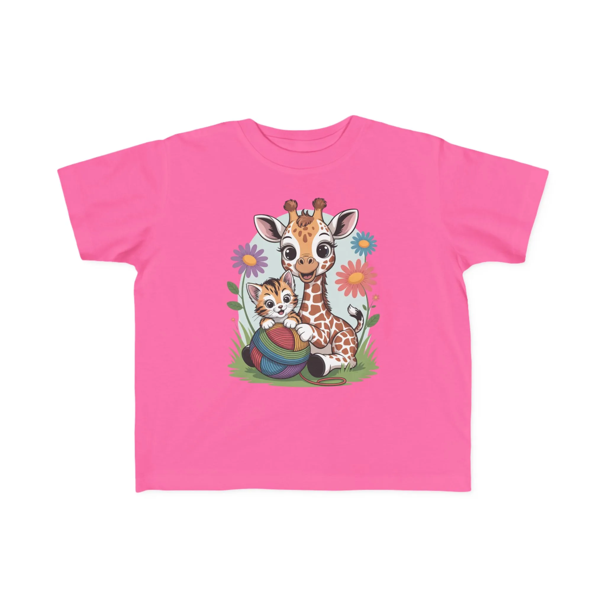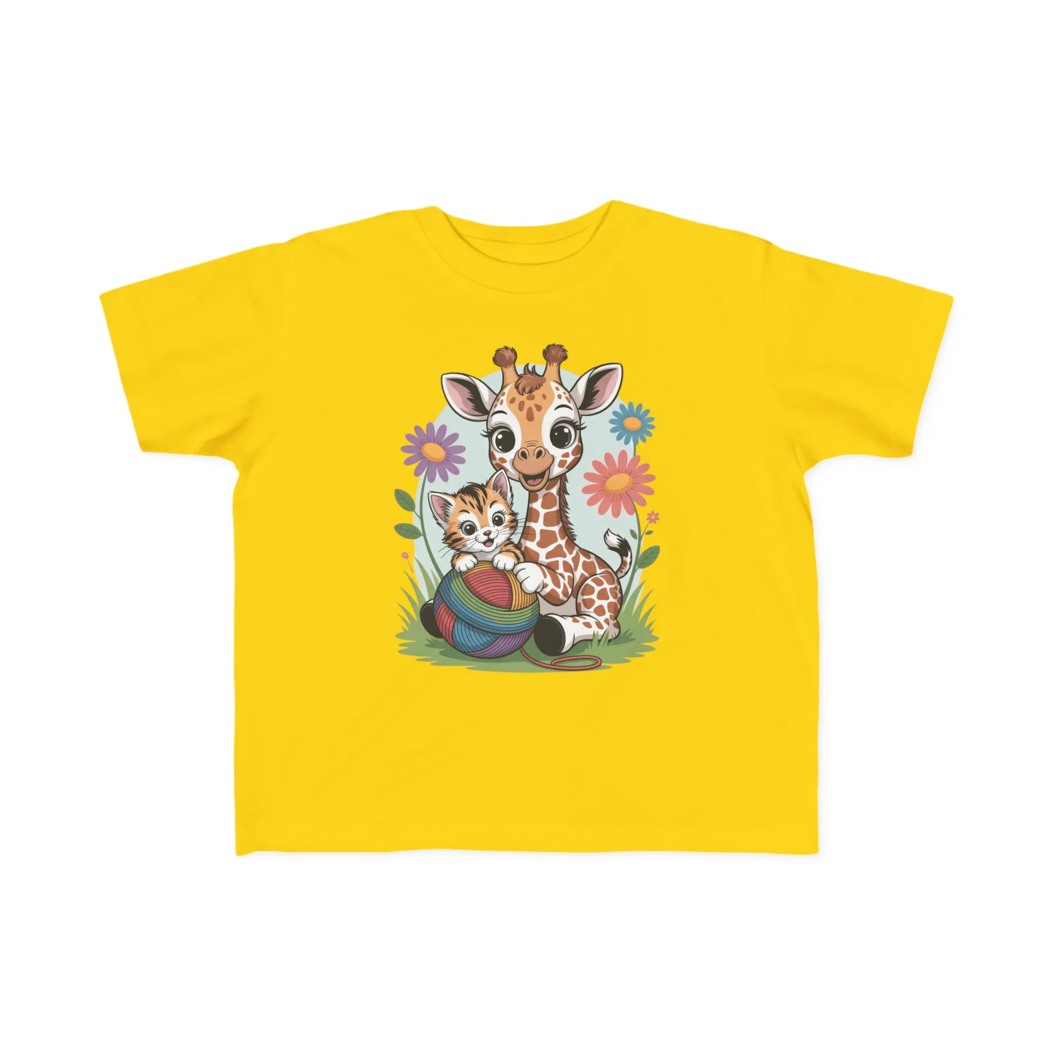 Giraffe and Kitten Playful Rainbow Yarn Short Sleeve Toddler Tshirt