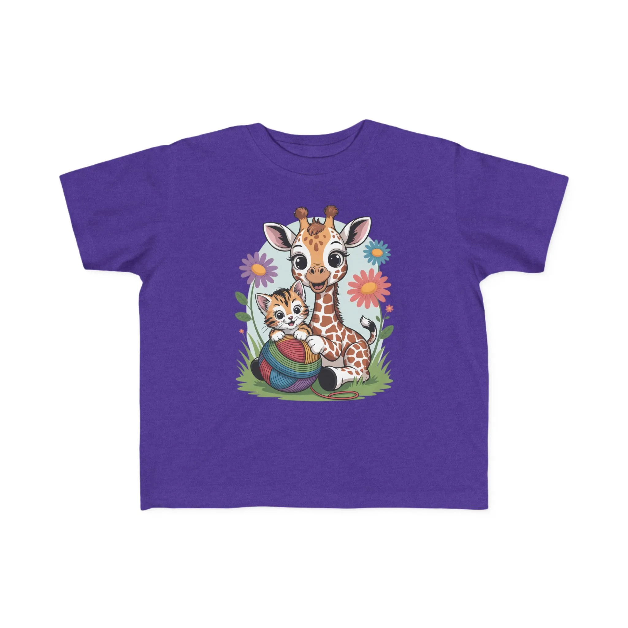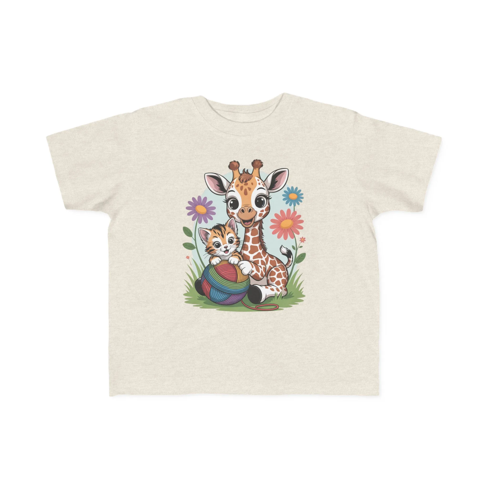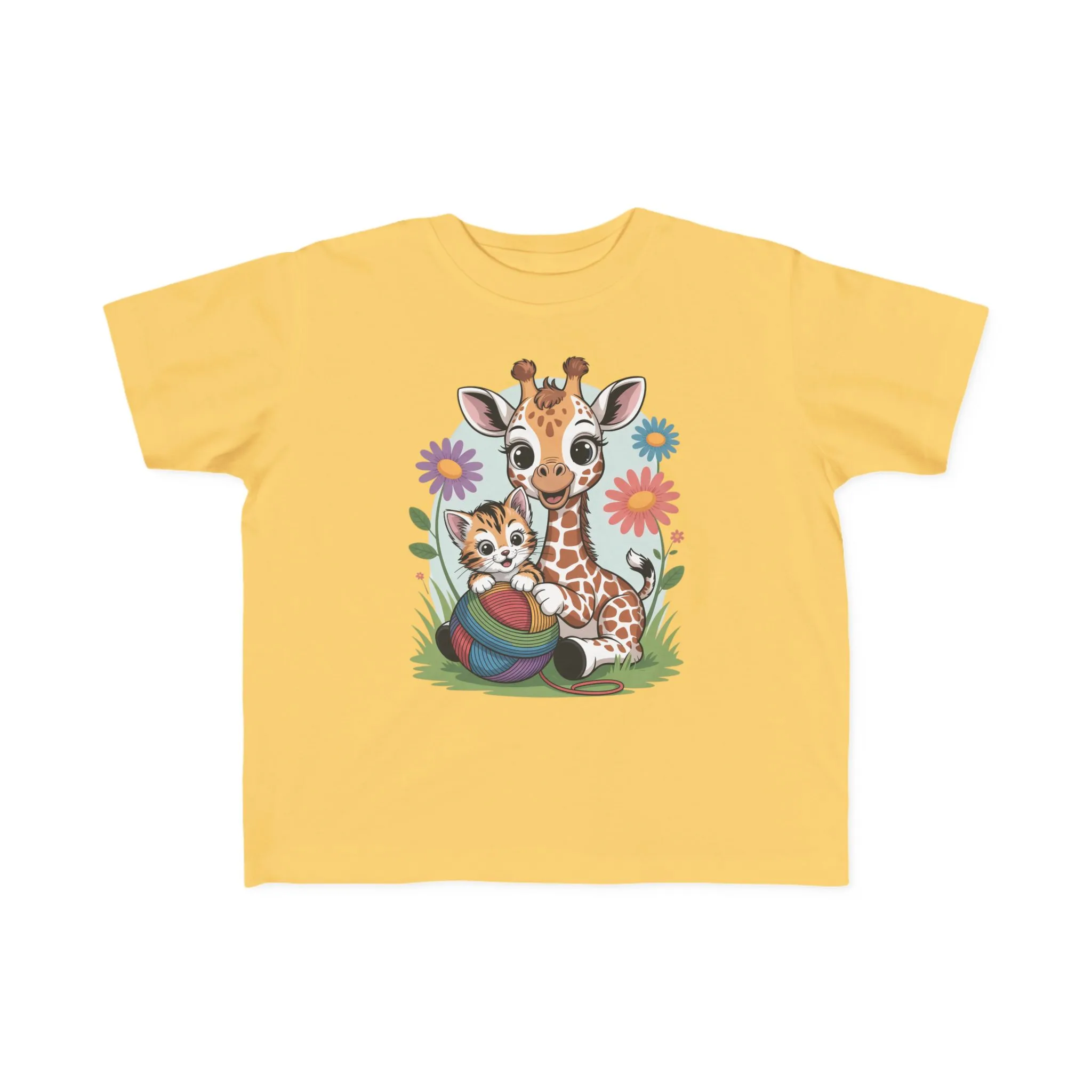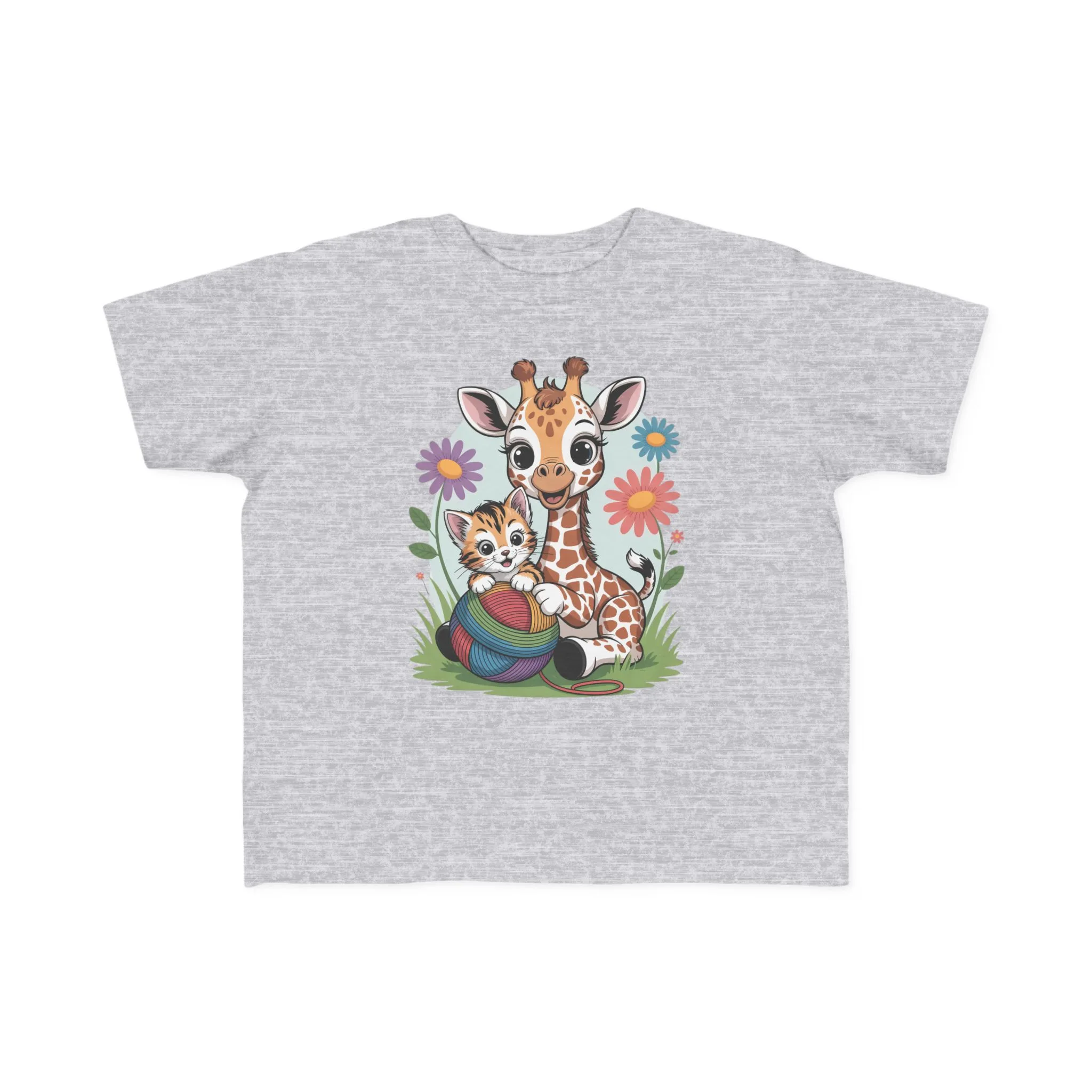 Giraffe and Kitten Playful Rainbow Yarn Short Sleeve Toddler Tshirt