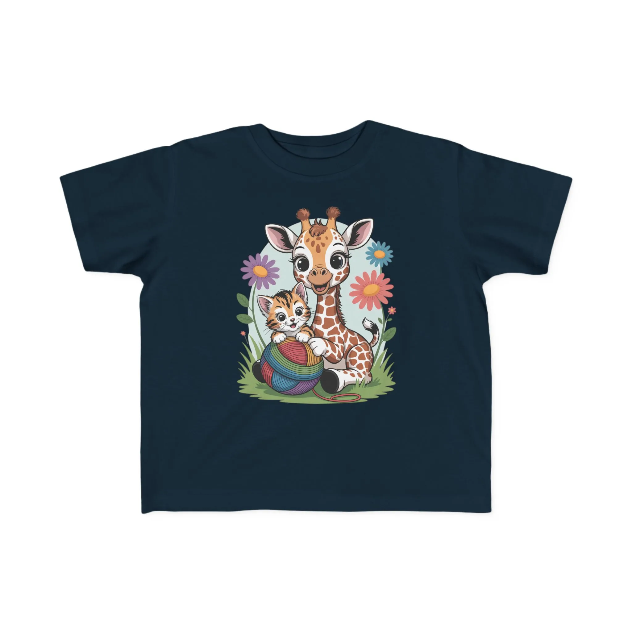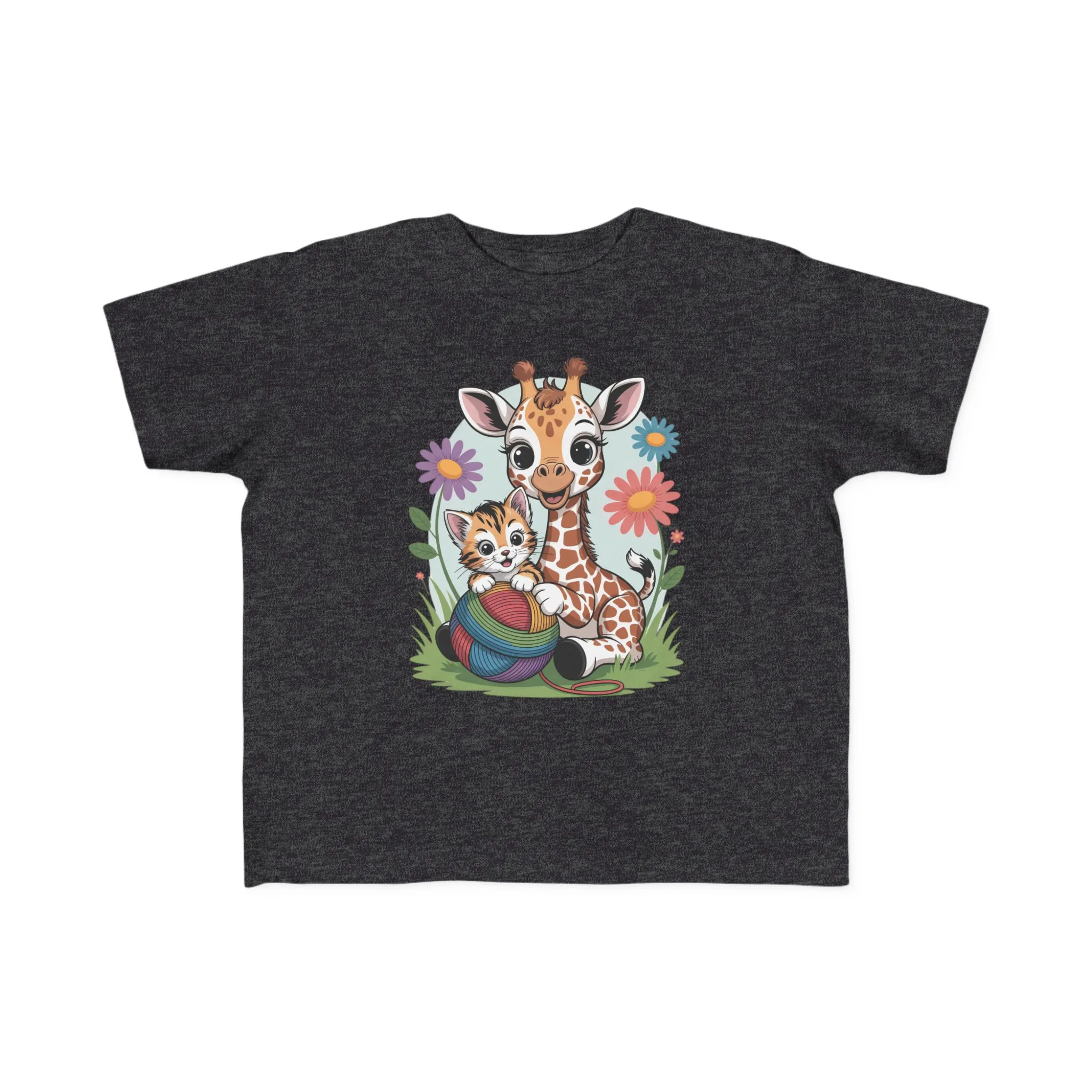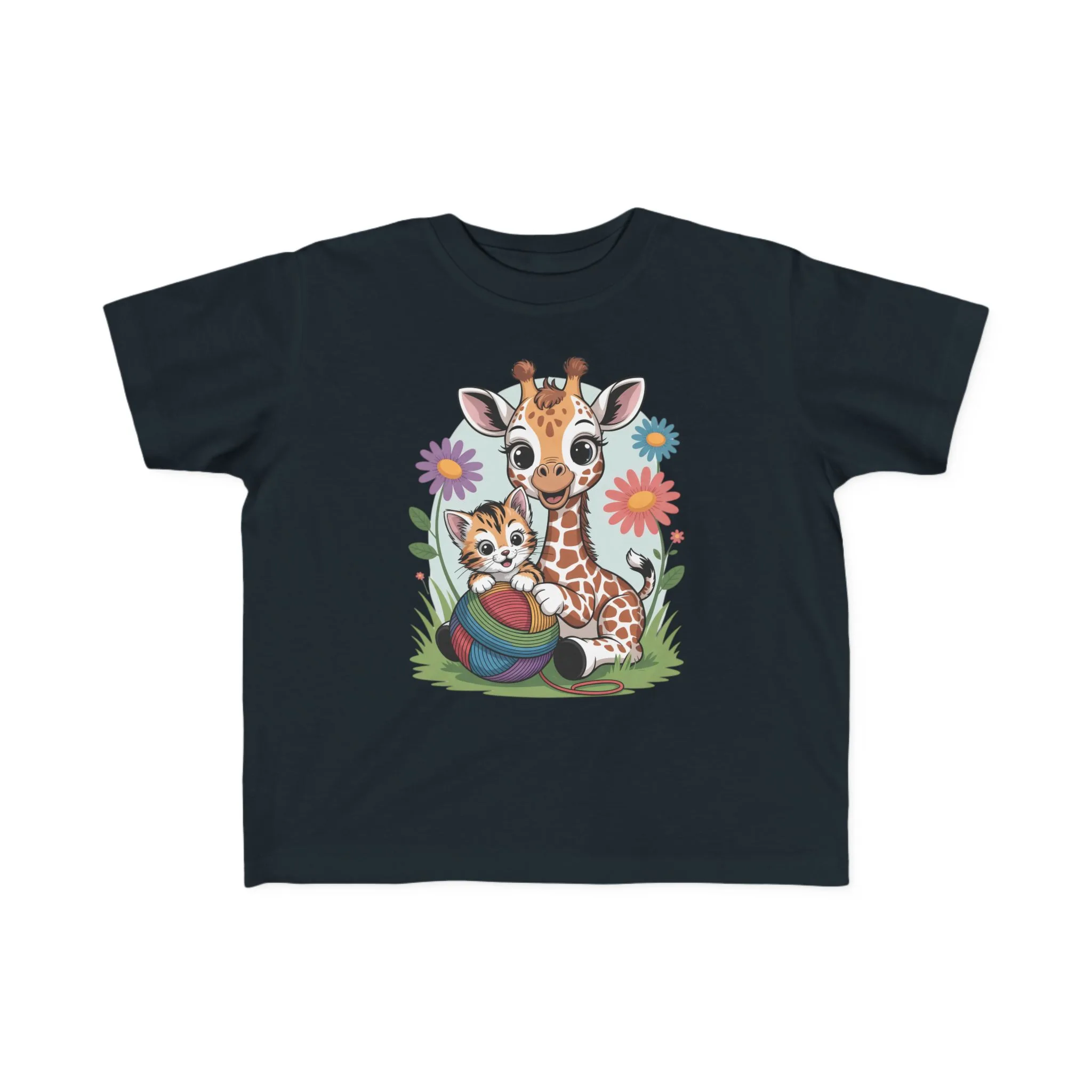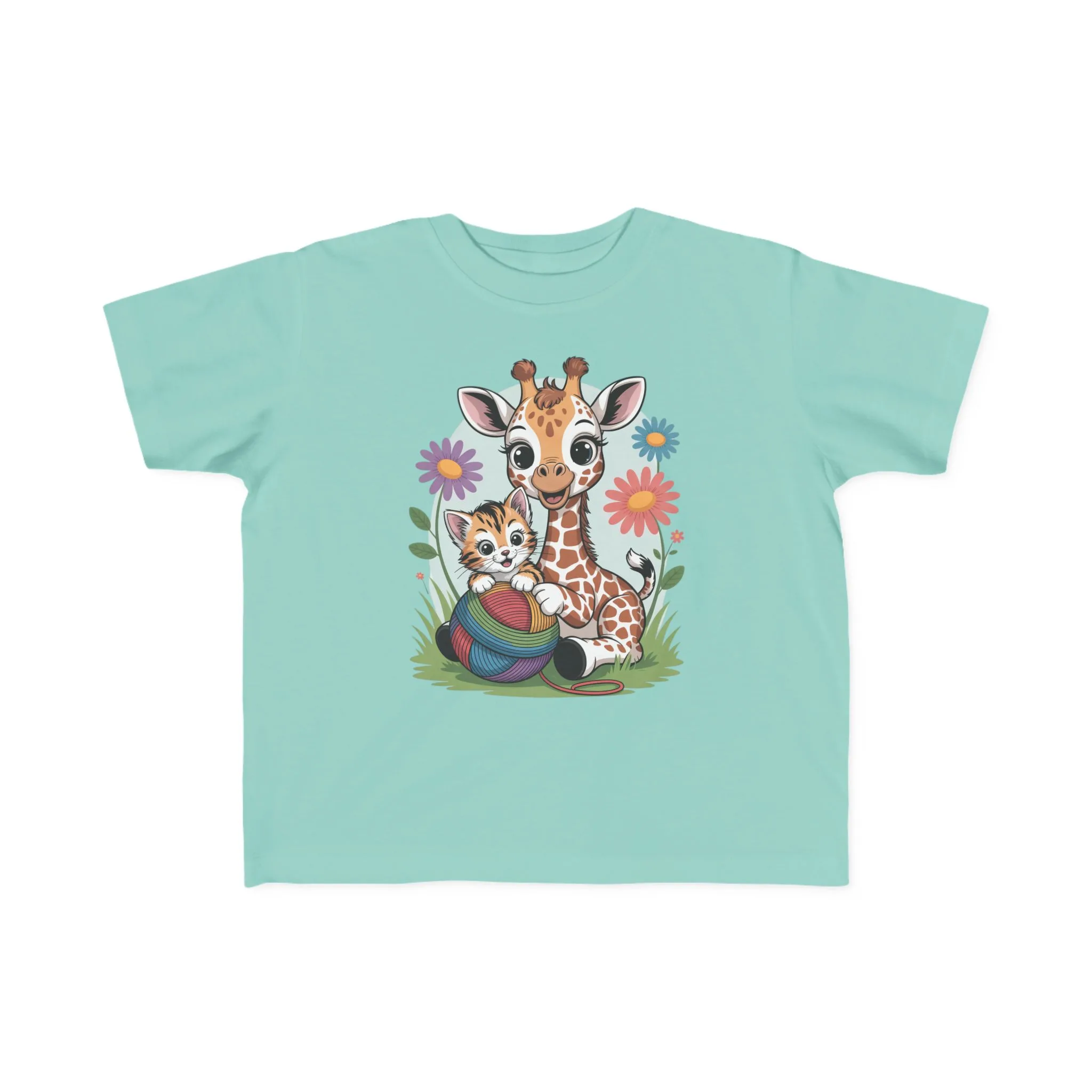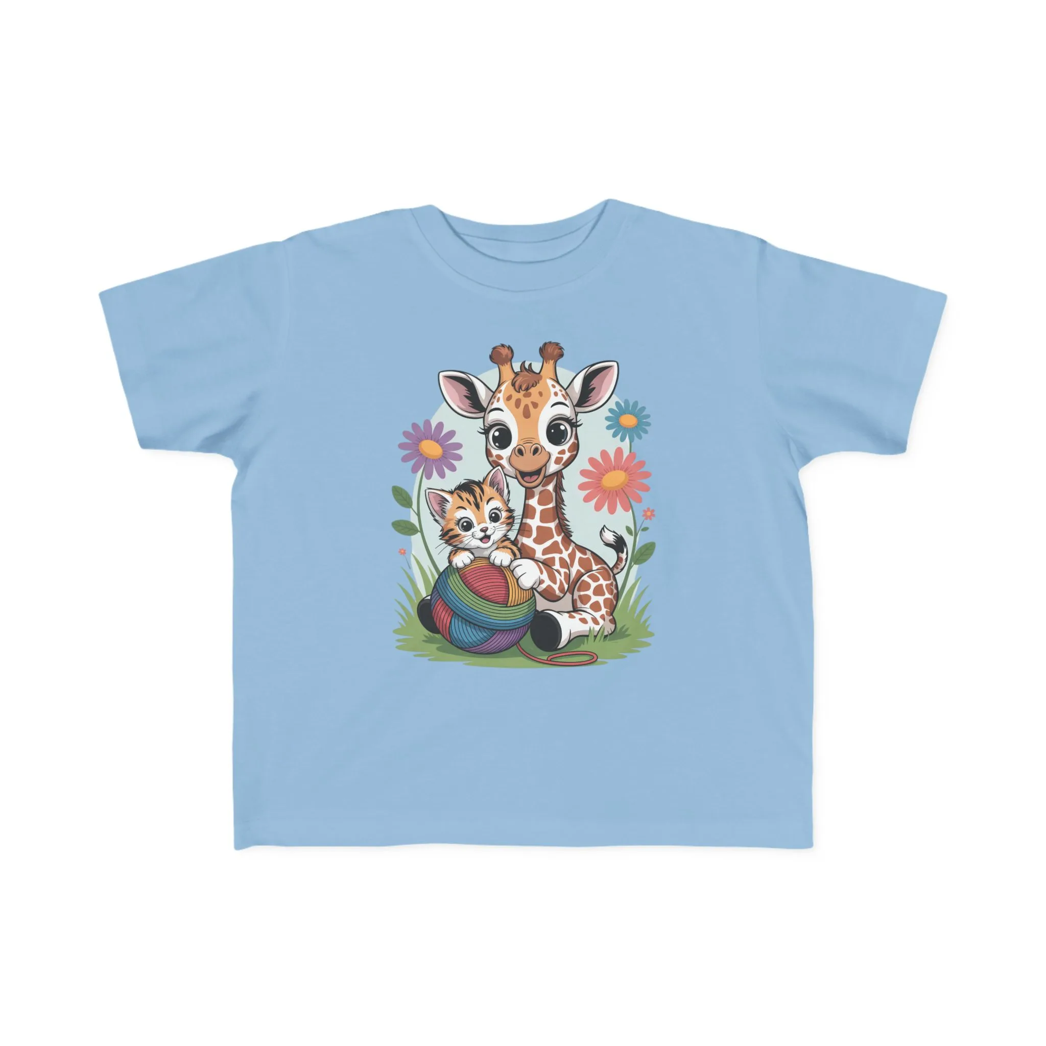 Giraffe and Kitten Playful Rainbow Yarn Short Sleeve Toddler Tshirt