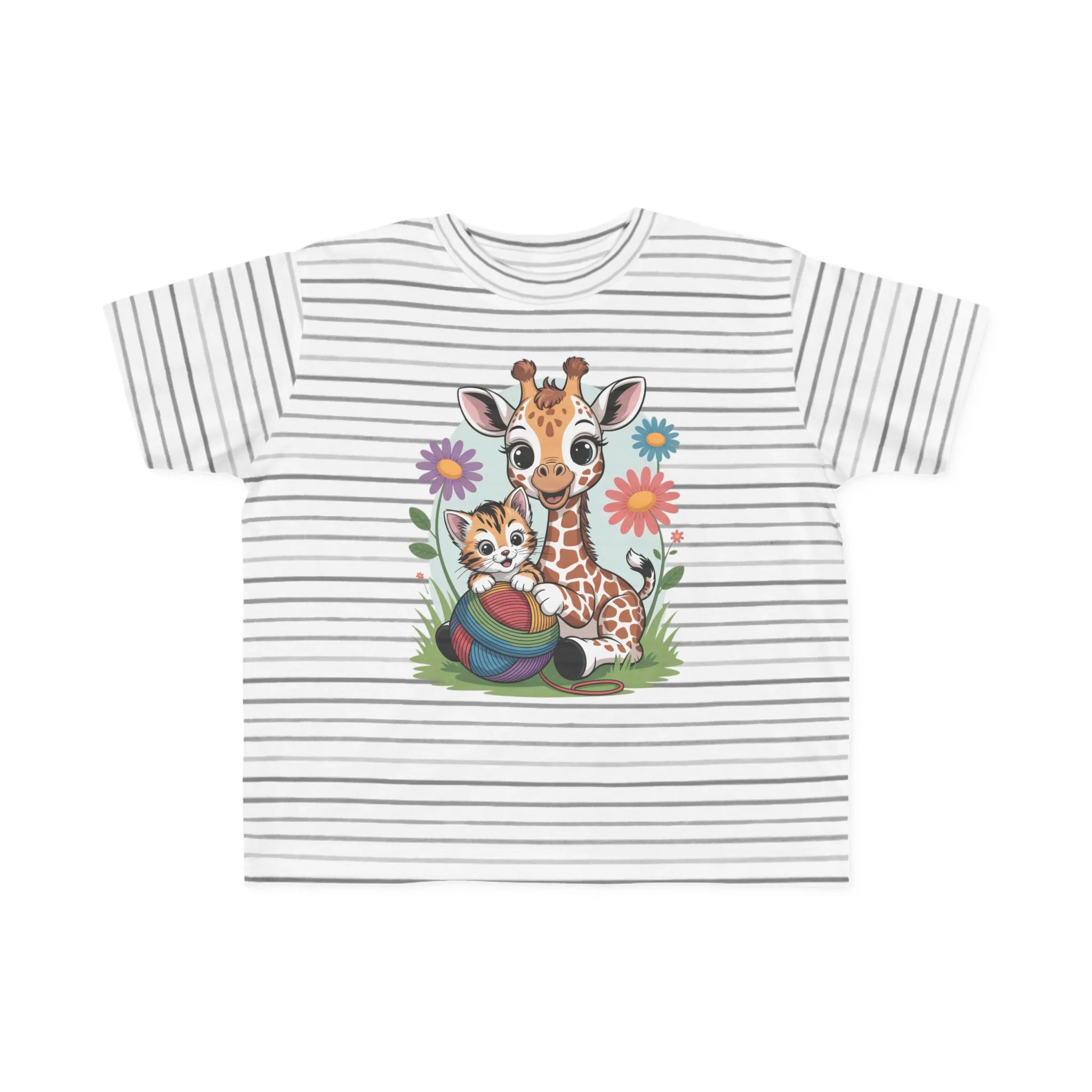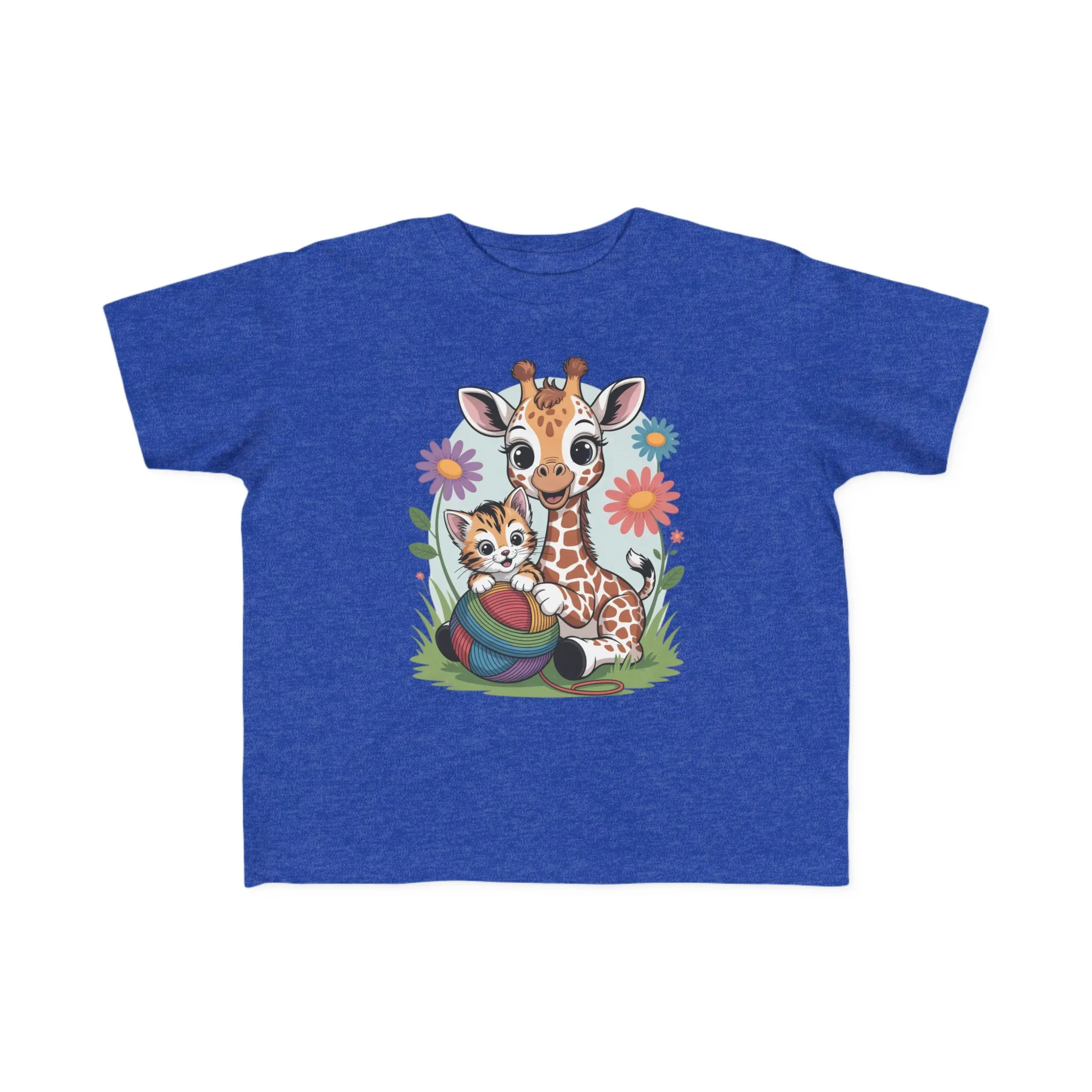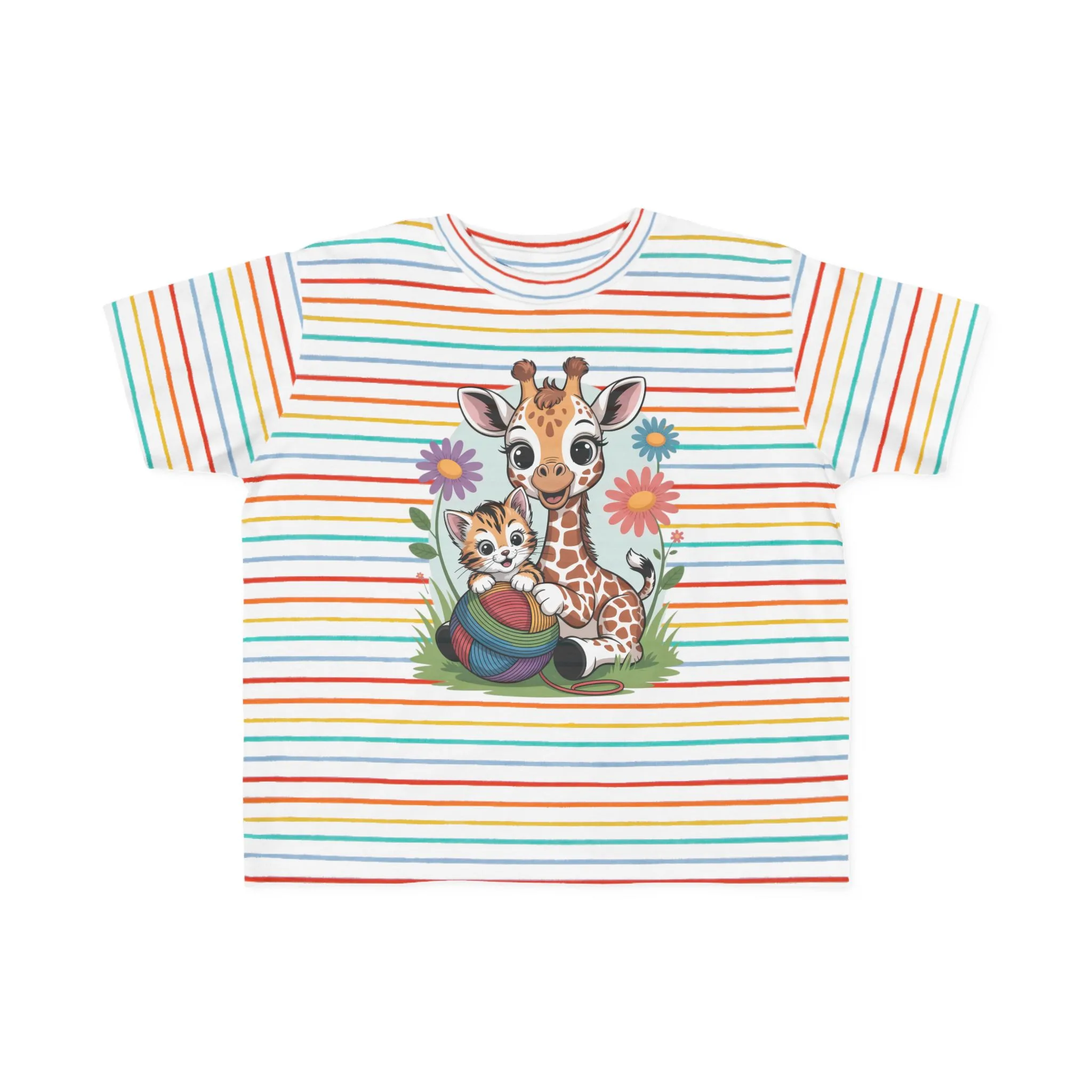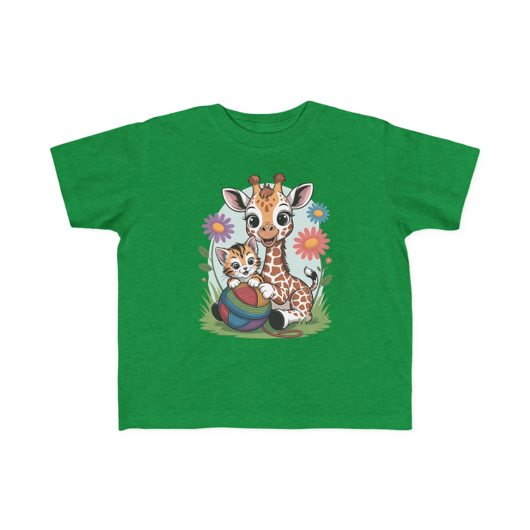 Giraffe and Kitten Playful Rainbow Yarn Short Sleeve Toddler Tshirt