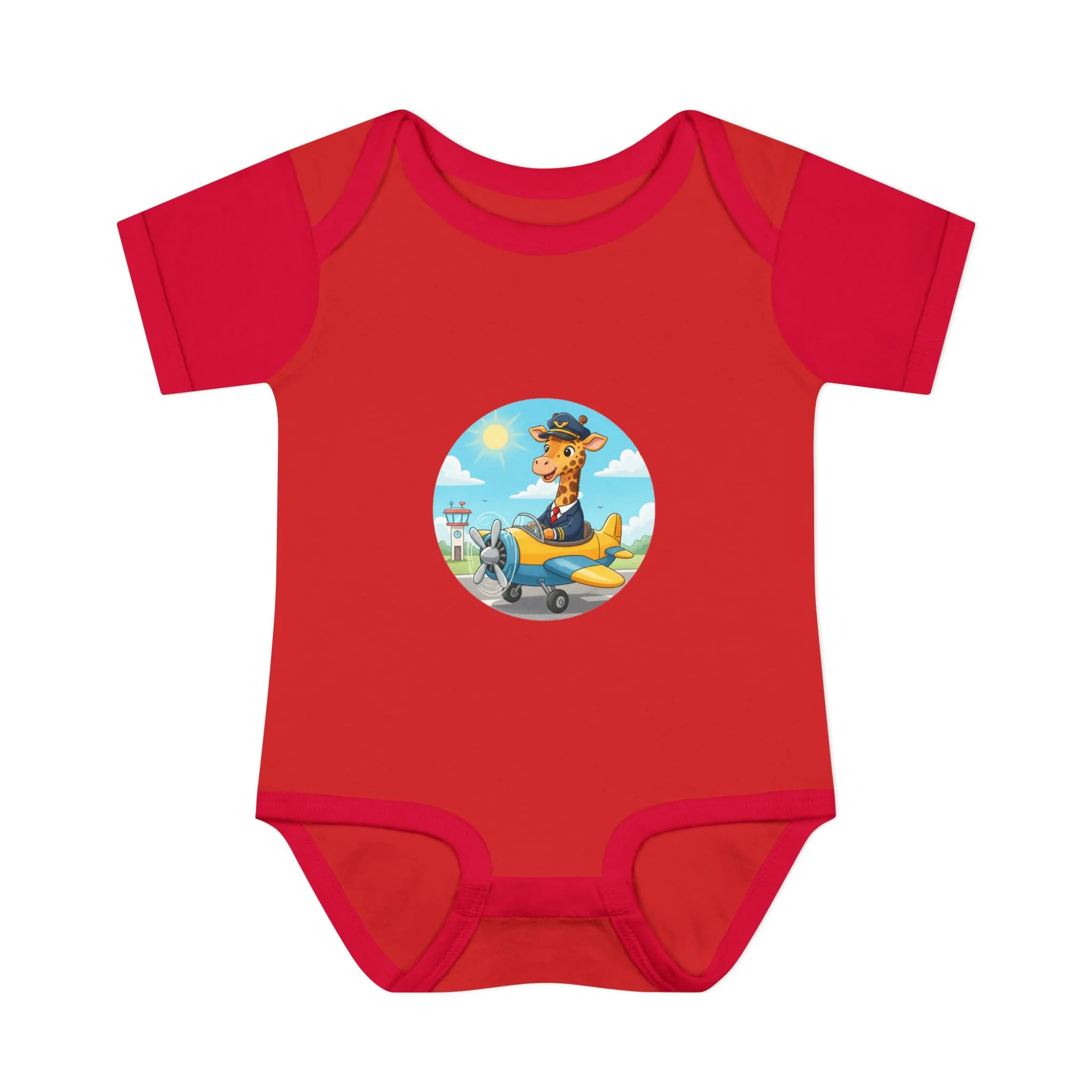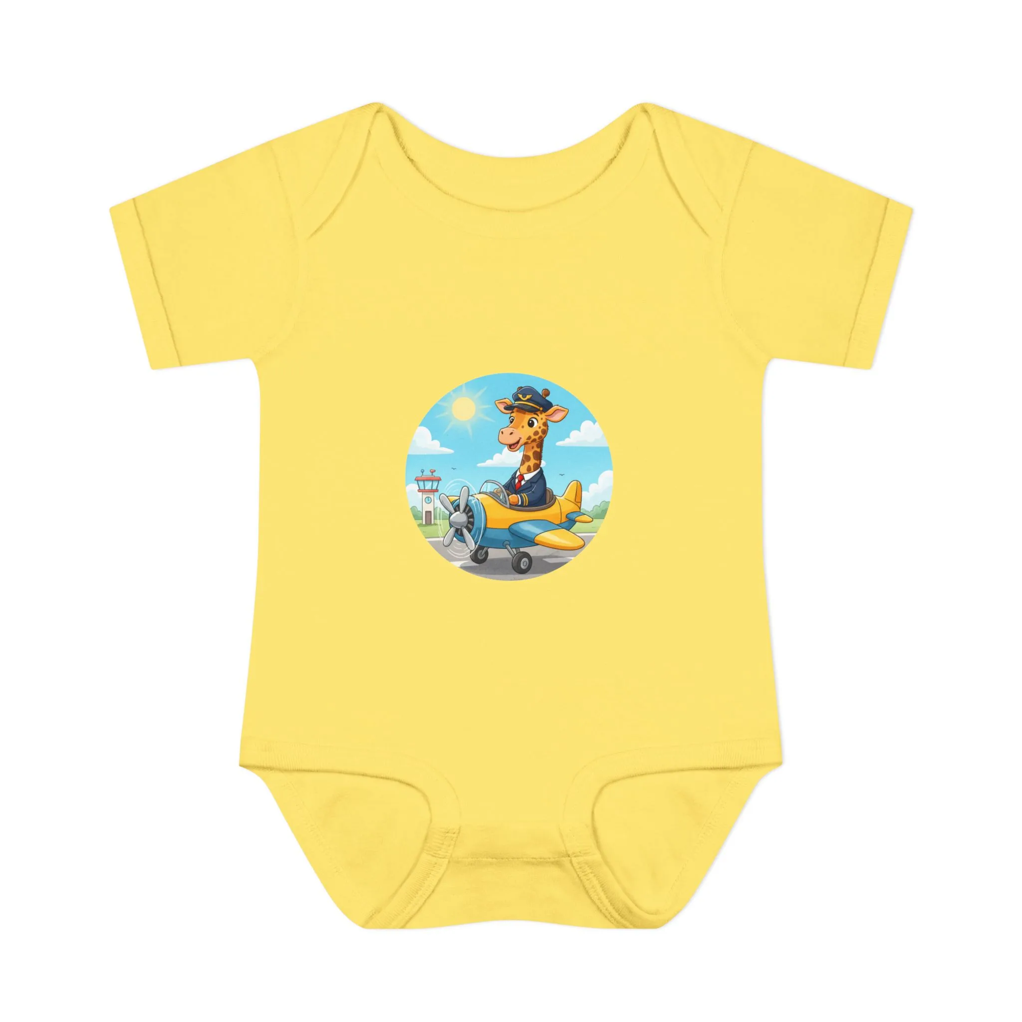 Optimized for “giraffe pilot baby bodysuit,” “aviator baby outfit,” “pilot themed onesie.”