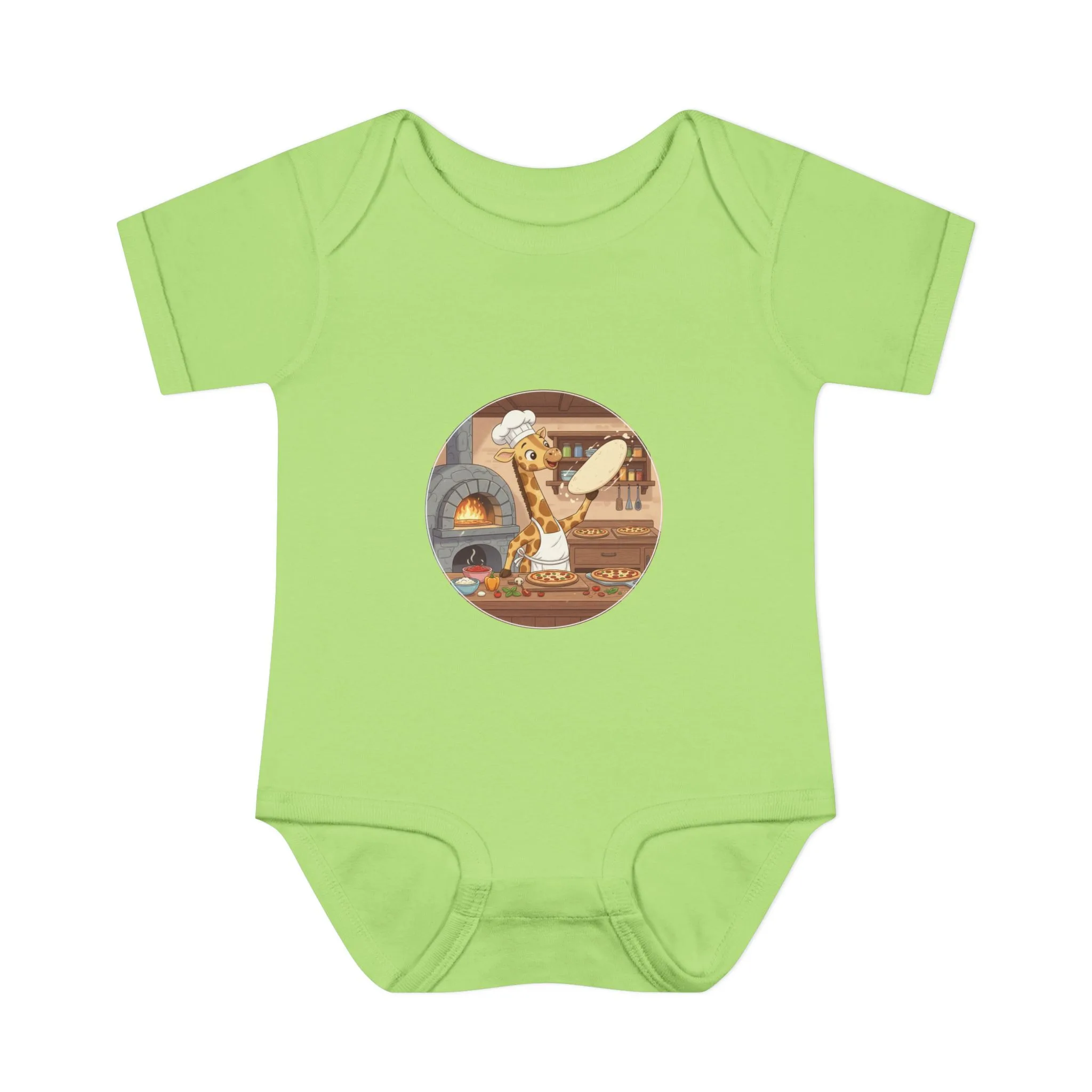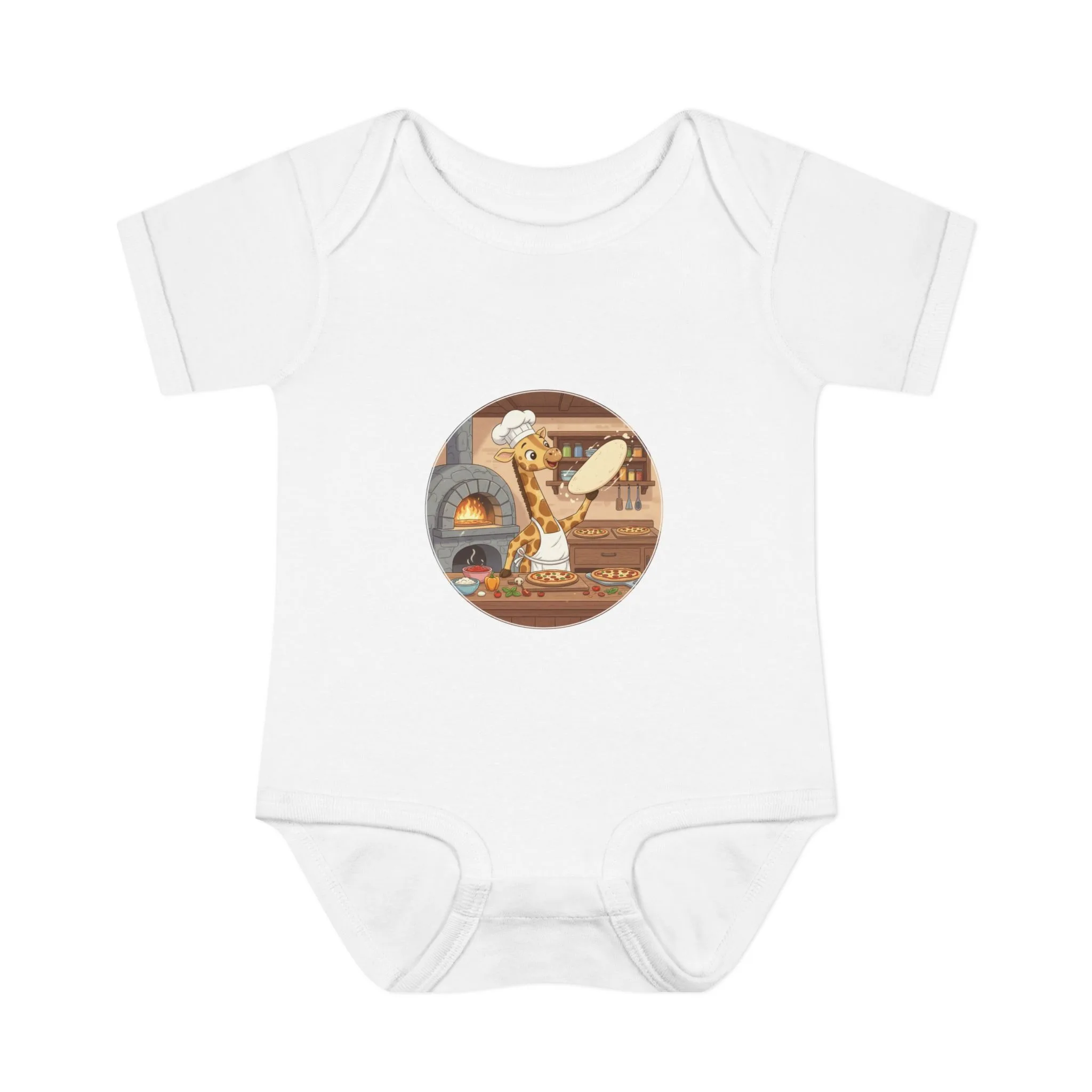 Perfect for searches like “giraffe chef bodysuit,” “pizza baby outfit,” “chef onesie for babies.”