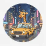 Above the cotton clouds, the Sky-Flying Giraffe Pilot navigates colorful winds, greeting stars with joyful loops and turns.