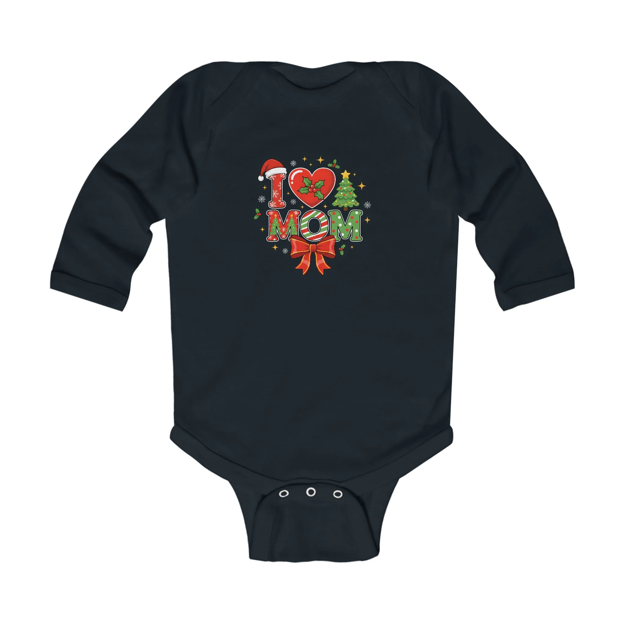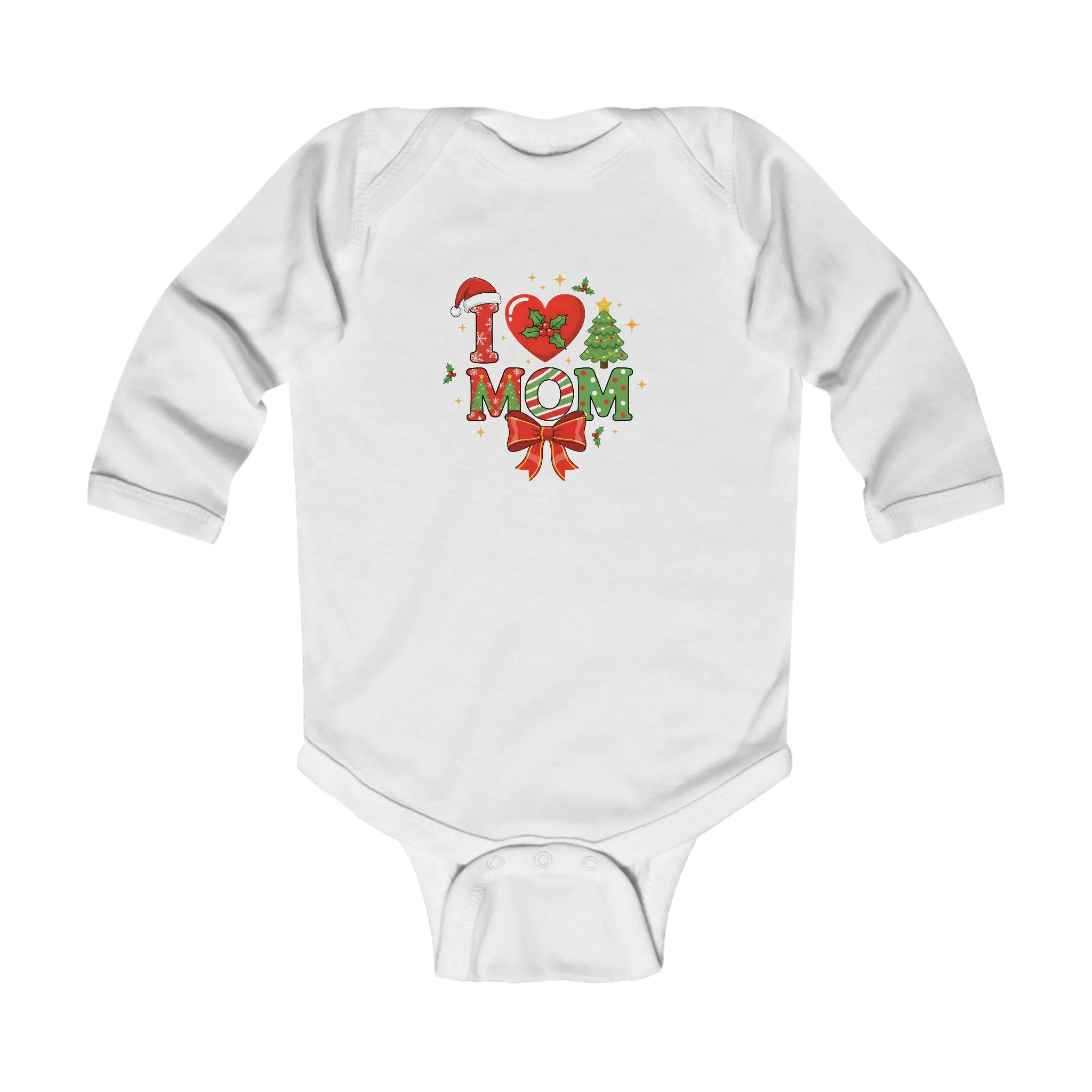 I Love Mom Christmas Design Long Sleeve Bodysuit